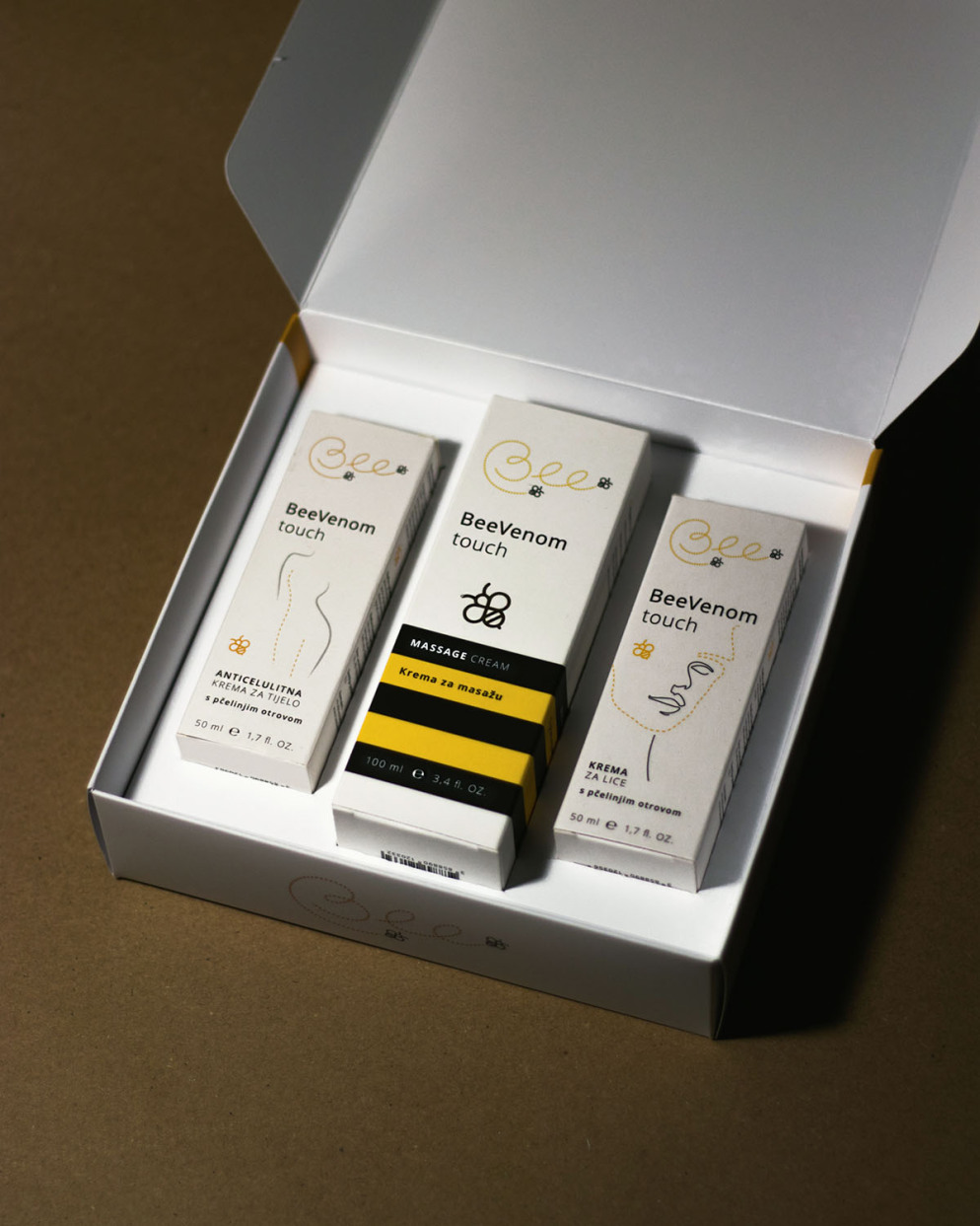 BeeVenom touch kremu za lice – inovativna kombinacija djelatnih tvari i pčelinjeg otrova s čak 70% melitina, hidratizira i revitalizira kožu lica, potiče proizvodnju kolagena, smanjuje pojavu novih i vidljivost postojećih bora i linija na licu.