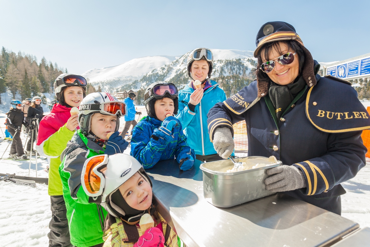 Butleri na stazi na skijalištu Turracher Höhe su glavna atrakcija servisa. Svakodnevno se kreću kroz područje skijališta i aktivnosti na stazama uljepšavaju malim i većim skijašima. Za začepljene noseve se dijele maramice, za crvena lica zaštitna krema, djeca dobivaju slatkiše, divni domaći sladoled (od ožujka), a roditelji po želji nekad i čašicu pjenušca. Povrh svega butleri će se pobrinuti za ekskluzivan program ugode. Tako se gosti, koji noće u jednom od objekata s butlerom, mogu radovati jutarnjim šetnjama na cipelama za snijeg (Schnee Schuhe) uz okrepljujući doručak, pa sve do ugodnih skijaških dana i kulinarskih delicija u koje smo se i sami uvjerili.